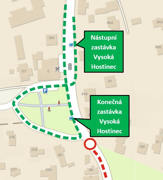 Z důvodu úplné uzavírky silnice III/29810 v obci Vysoká nad Labem (výstavba kanalizace), dochází ke změně trasy linek MHD.